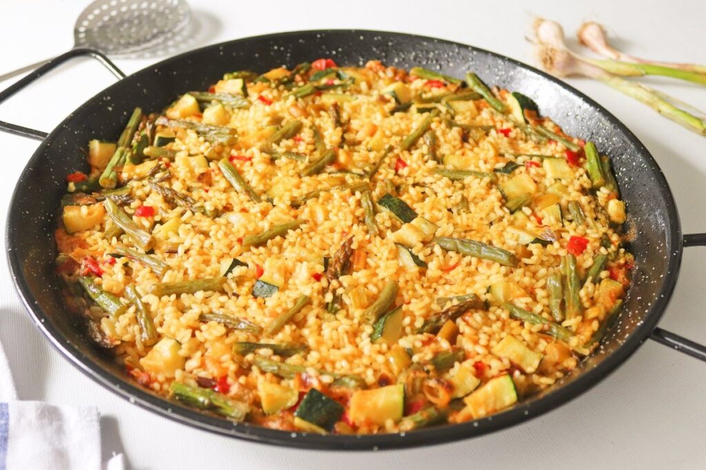 Esta paella de verduras no solo deleita el paladar, sino que fortalece el cuerpo con nutrientes esenciales, conectando el placer culinario con el bienestar integral, donde cada bocado de verduras frescas contribuye a una vitalidad renovada y una dieta equilibrada.